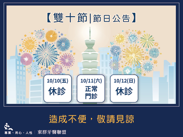 「東群牙醫診所」創立於1989年,至今已有 35年的歷史,多年以來我們一向稟持「專業、用心、人性」的經營理念,以服務東區群眾牙齒健康為宗旨,並擔負起照顧全家口腔健康的使命。35年來對社區回饋的努力早已深獲民眾肯定,本著對社會責任的理想與執著,亦 在滿足患者需求的目標趨策下,東群於2000年積極投入大量資源以整合擴編,劃世紀 誕生的東群雖突破傳統但仍保有人情與親切,除提供更專業的醫療服務外,更以先 進精密的儀器汰換原設備,在舒適的人性化空間下,我們期能服務更廣大台北、甚至台灣全省及大陸之民眾,期盼人人「擁有口腔健康,享有美麗人生」。