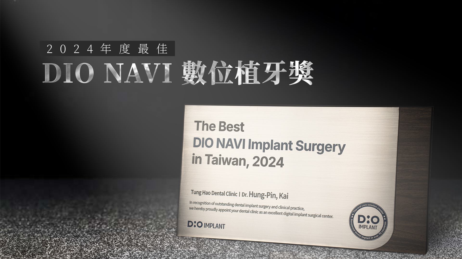 榮獲由國際知名植牙系統品牌 DIO Implant 所頒發的: