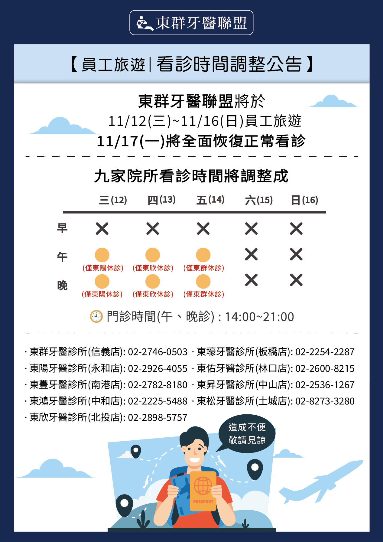 114年:員工旅遊門診時間異動公告