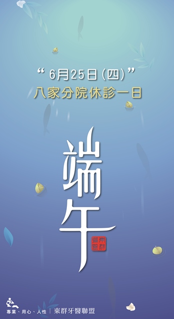 6/25 (四) 端午節 - 東群牙醫聯盟 休診一日