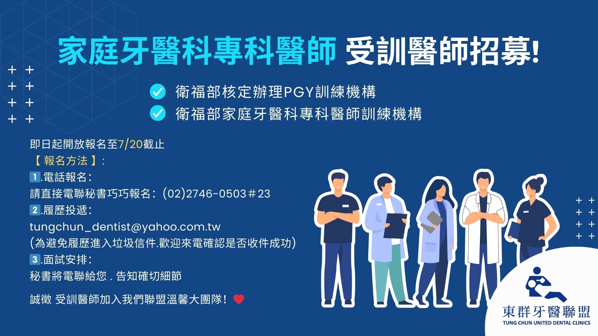 113年:家庭牙醫科專科醫師 (受訓醫師招募)